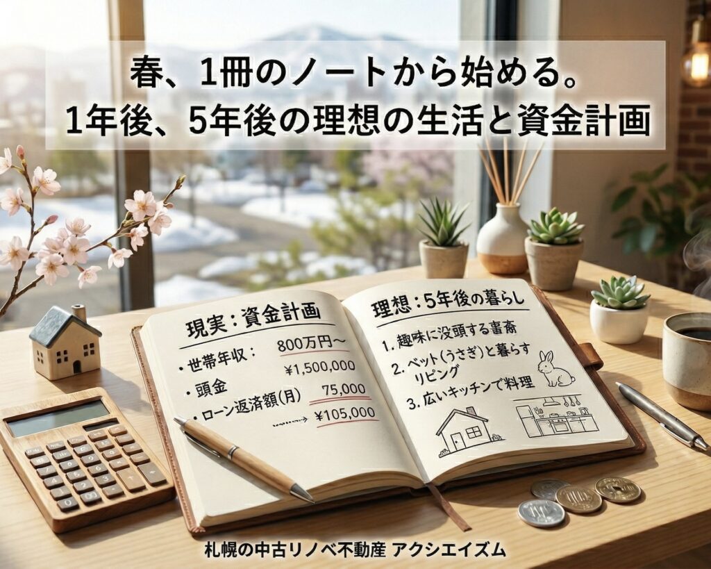 もし、ノートに書いた理想が膨らんで「これ、どうやったら叶うんだろう?」と思ったら、ぜひ私たちアクシエイズムにそのノートの内容を聞かせてください。札幌の街で、あなたらしい「ゆとりある暮らし」を形にするお手伝いを、精一杯させていただきます。